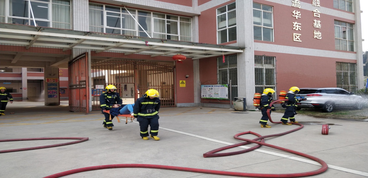 在消防队员的奋力扑救下,“大火”被成功扑灭,“被困人员”也全部安全救出,演练活动圆满结束。