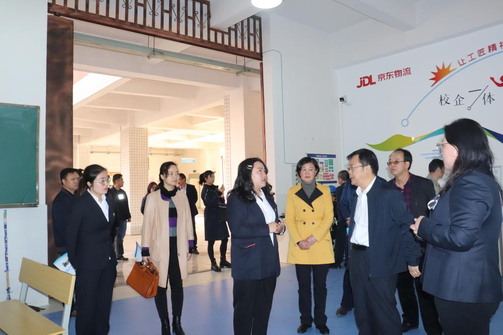 陈军一行先后来到学院实习实训中心SMT实习实训基地、京东物流实习实训基地、机电一体化实习实训基地以及锡工艺美术学院实习实训基地,实地察看了学院校企合作、实习实训情况,听取了学院培训鉴定、招生就业、师资队伍、政策争取、教育教学相关工作汇报和建议。
