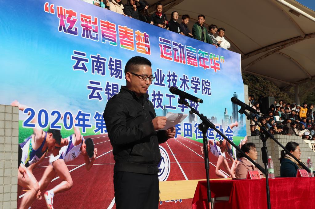 杲杲冬日,万里无云。12月9日,学院2020年第十四届冬季田径运动会在运动场隆重开幕。学院院长李蕾致开幕词,党委书记张鹏宣布田径运动会开幕,副院长曲向哲主持开幕式,纪委书记高志明、副院长张惠芬、曲靖农校负责人何志明等出席开幕式。
