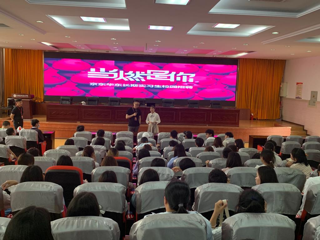 在“梦从京芽起”物流管理专业京东集团实习动员会上,学院副院长张惠芬、京东物流昆山区人力资源部经理许丰对本次实习提出了相关要求。许丰对京东的企业文化、实习岗位内容等进行了说明。张惠芬从实习安全、职业生涯规划等方面进行了安排。