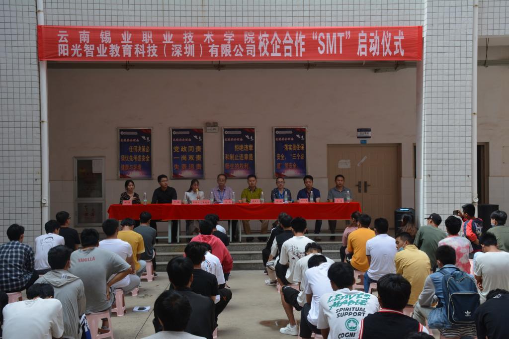 6月5日,学院与阳光智业教育集团校企合作共建“SMT 班”开班仪式在实训中心举行。学院党委书记张鹏在开班仪式上致辞,阳光智业教育集团深圳公司总经理李建军讲话,学院副院长张惠芬主持开班仪式。