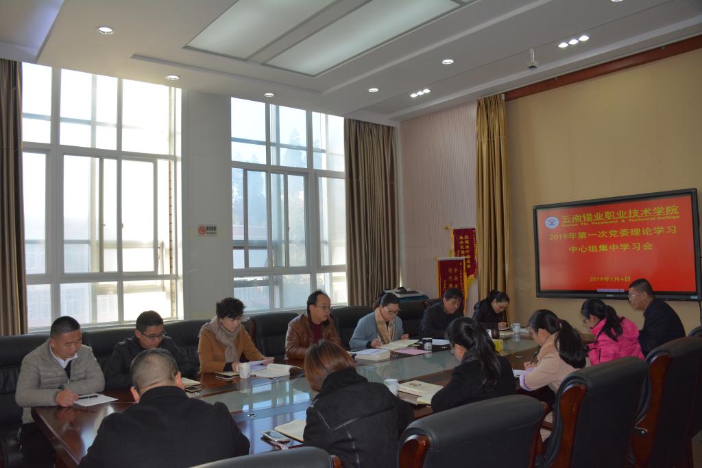 为深入学习贯彻习近平新时代中国特色社会主义新思想和党的十九大精神,深化认识,统一思想,全面贯彻落实党中央决策部署,充分发扬党内民主,加强党内监督,高标准、高质量开好2018年度学院领导班子民主生活会,1月4日上午9:00分,职业学院党委理论学习中心组组织学院领导班子成员、各党支部书记、专职副书记及相关人员在三号教学楼五楼小会议室进行2019年第一次集中学习,专题学习研讨关于开展好2018年度领导班子民主生活会相关文件精神。