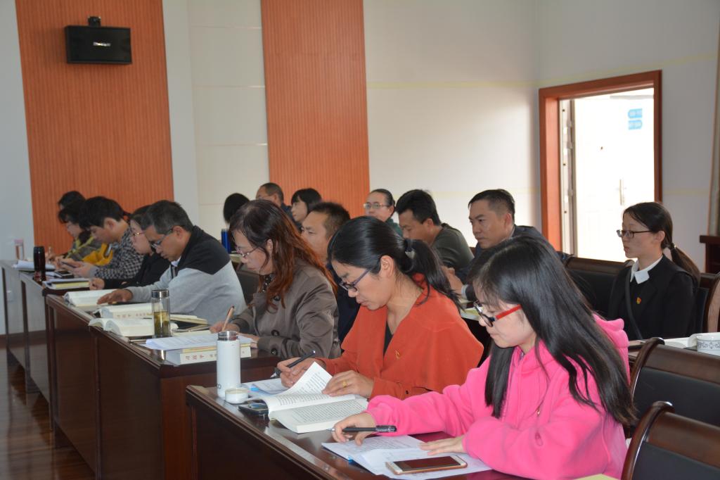 为深入贯彻习近平新时代中国特色社会主义新思想和党的十九大精神,进一步贯彻落实全国教育大会精神,11月16日下午,职业学院党委理论学习中心组组织全院党员干部在三号教学楼五楼大会议室进行第八次集中学习,专题学习研讨全国教育大会精神。学习由学院党委副书记、院长李蕾主持。