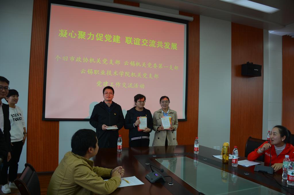 为深入学习贯彻习近平新时代中国特色社会主义思想和党的十九大精神,不断推进“两学一做”学习教育常态化制度化,有效促进基层党建工作标准化规范化建设,积极探索新形势下高校基层党建工作新思路、新模式,持续提升基层党建工作科学化水平。10月15日下午,职业技术学院机关党支部与个旧市政协机关党支部、云锡控股公司机关党委联合开展“凝心聚力促党建 联谊交流共发展”支部党建工作交流暨工会活动。