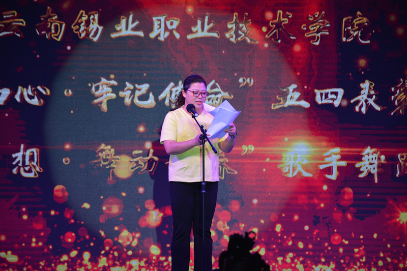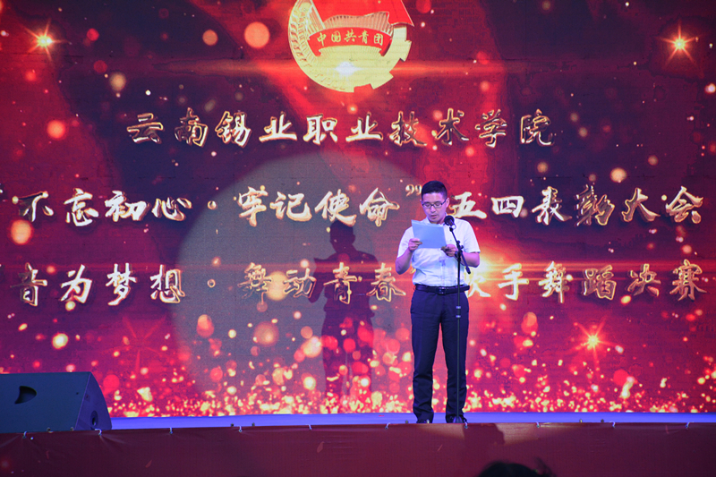 为纪念“五四”运动99周年,进一步传承和弘扬“五四”爱国精神,5月23日晚19:00,学院在图书馆广场举办“不忘初心,牢记使命”五四表彰大会暨“音为梦想,舞动青春”歌手舞蹈决赛。锡业股份团委书记王战蒙、红河学院团委书记尹剑秋、红河卫生职业学院团委书记范渝、个旧市团委书记助理李全、国家一级社会指导员,健美操教练李永芳、云南联力文化传播有限公司总经理孙杰、红河州新华书店有限公司个旧分公司总经理龙静、个旧市锐摄影创意影像林露及学院领导班子成员、全体教职工以及2000余名学生参加活动。活动在庄严肃穆的国歌声中拉开帷幕。