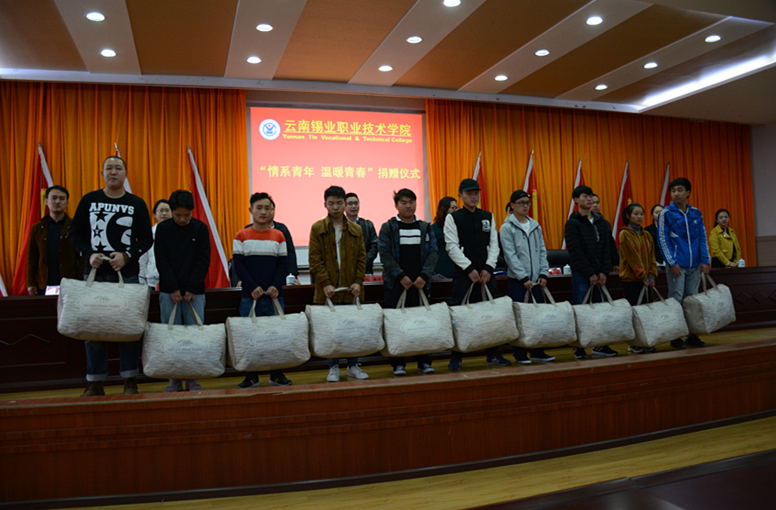 3月8日,职业学院在508报告厅举行“情系青年,温暖青春”爱心捐赠仪式,对学院10名贫困学生进行爱心资助并对6名“学雷锋”的先进大学生进行了表彰。学院党委书记李蕾、控股公司团委书记、工会副主席张弛、锡业股份团委书记王战蒙出席捐赠仪式,云锡控股公司有关单位团委干部及学院相关部门负责人、大学生社团代表和学生代表参加了此次活动。仪式由学院副院长曲向哲主持。