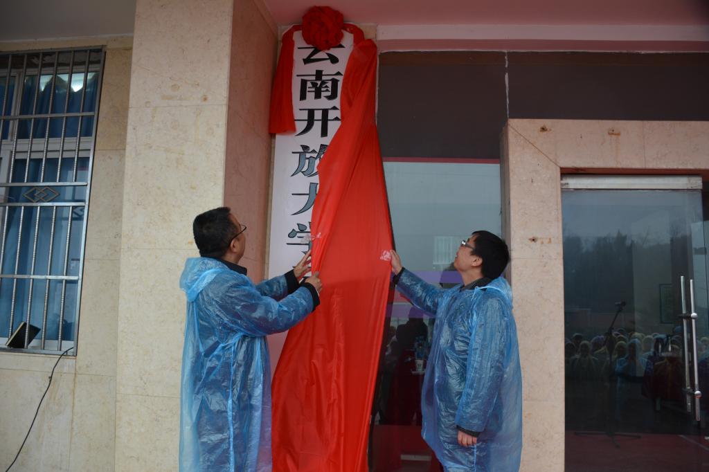 云锡控股公司党委副书记姚家立和云南开放大学党委书记罗国权共同为云锡开放学院揭牌。