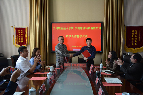 为了进一步培养符合现代企业发展要求的高素质专业型人才,提高人才培养质量,推动职业学院的快速发展,进一步加强校企深度融合,3月15日,职业学院院长李建波在五楼小会议室与云南惠投科技有限公司总经理特助练信平代表双方签订了产学合作协议。红河州经济开发区管委会副主任李俊、副局长周玉钧、个旧市人社局副局长李维智、个旧市人社局就业中心主任杨燕萍、云南惠投科技有限公司总厂长吴光宇、学院党委副书记、常务副院长、工会主席张家涛、学院副院长陈国华,院长助理张惠芬和各院系部负责人及相关人员参加签字仪式。签字仪式由学院副院长曲向哲主持。