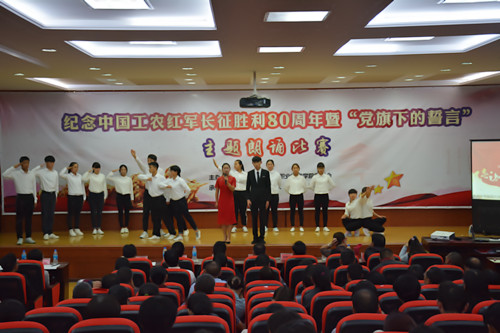 为隆重纪念中国工农红军长征胜利80周年,讴歌中国共产党为实现中华民族伟大复兴中国梦的奋斗历程和光辉业绩,充分展示职业学院广大教职员工立德树人、追求卓越、勇攀高峰的良好精神风貌。11月16日晚19:30分,由职业学院党委主办,党委宣传部、思政部、学生处和团委承办的纪念中国工农红军长征胜利80周年暨“党旗下的誓言”主题朗诵比赛在508报告厅举行。学院领导班子、助理以上管理干部、各党支部全体党员以及200多名学生观看了比赛。