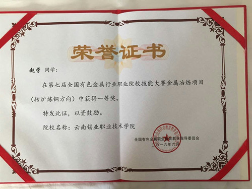 该赛项共有来自于全国11个省、市、自治区的17所院校参与,参赛学生人数144人,其中铜冶炼技术方向参赛院校11所,参赛学生44人。经过激励的竞争和角逐,职业学院荣获团体三等奖,赵学同学荣获个人一等奖,张震同学荣获个人二等奖,孔垂银、谷建东两位同学荣获个人三等奖,王宇超、潘薇和朱兴彩三位老师荣获优秀指导教师。