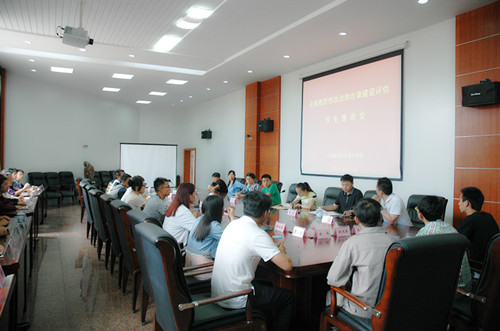 会上,学院党委常务副书记张跃春从新葡的京集团8814检测站、思想政治理论课建设自评情况、特色与创新工作、存在的问题及今后努力的方向、自评结果5个方面向专家组对学院思政课建设情况和自查报告进行了专题汇报。