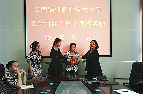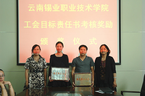 4月7日下午,职业学院工会对在2014年度工会目标责任书考核中表现优异的基层工会和个人进行了颁奖。