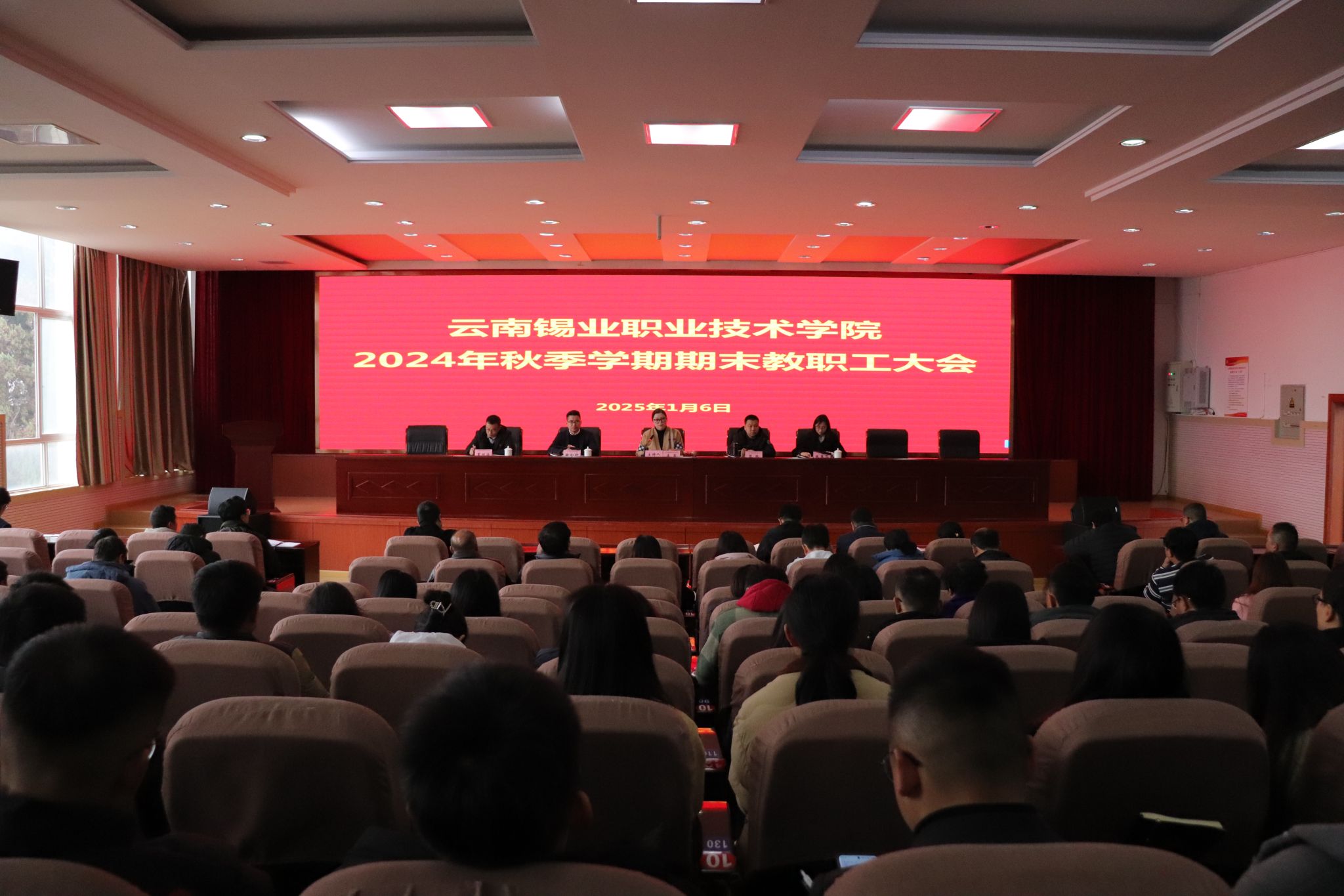 1月6日,学院在教学楼508报告厅召开2024年秋季学期期末教职工大会。回顾2024年工作成果,明确发展方向,细化发展举措,安排部署2025年重点工作。学院党政领导班子成员、全体教职工参加大会。