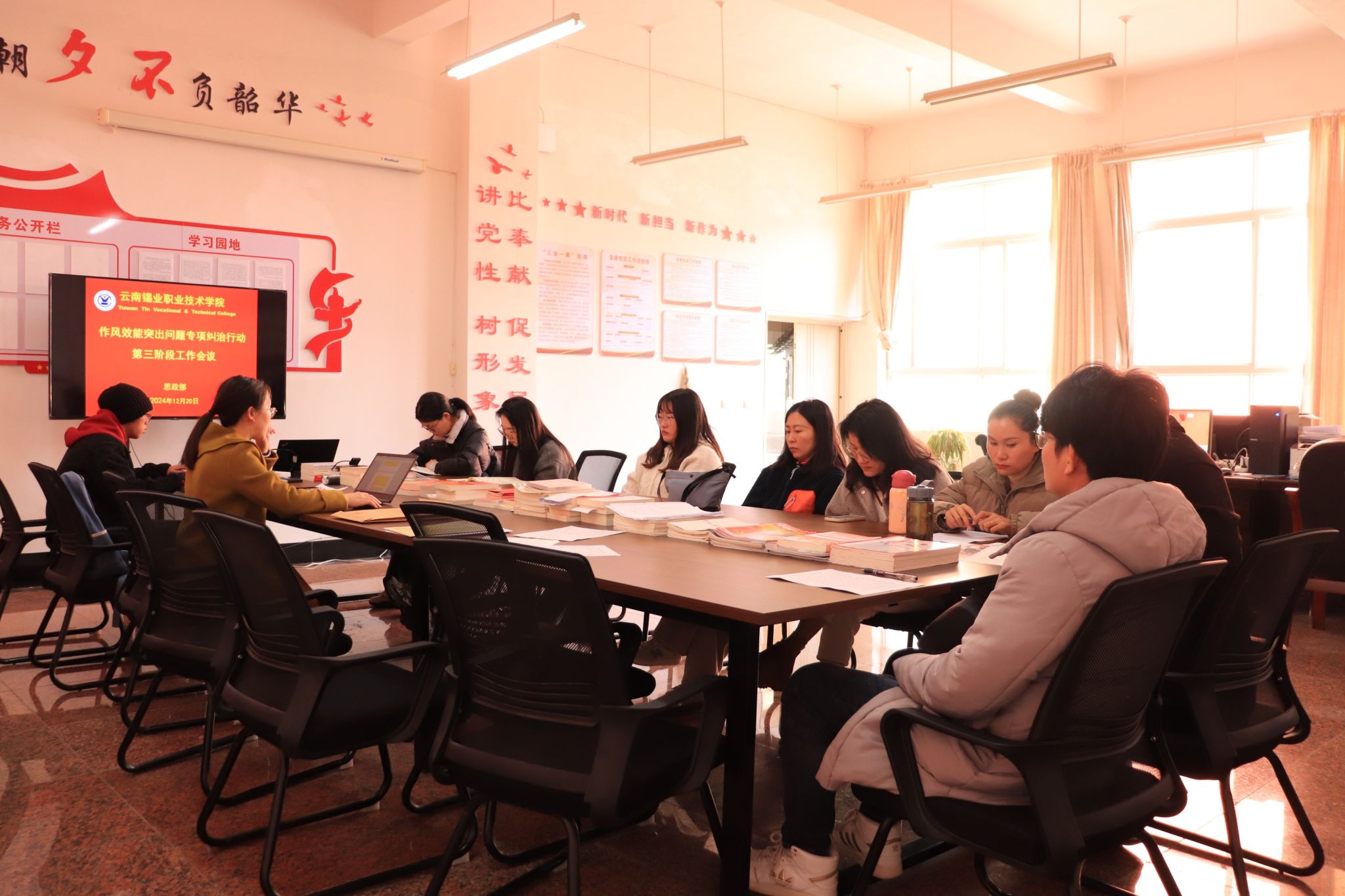 全面回顾,建立长效机制。加强作风建设,必须对照思想作风、学风、工作作风、领导作风、生活作风方面存在的突出问题,加大整改力度,并坚持把解决问题始终摆在首位,自觉把边整边改、立改立行的原则贯穿到作风建设的各个环节。各部门在行动中深入学习明确方向、广泛交流找准问题、细化措施确保落实,对标各项相关目标责任书完成情况,对 2024 年以来的年度重点工作任务、巡察反馈问题整改、教育教学高质量发展三年行动和大屯产业学院建设、学生工作等重点工作的推进落实情况进行集中“回头看”,全面查找存在的问题,深挖问题根源,总结提炼好经验、好做法,结合实际建立和完善一批长远整改措施和整改工作机制,形成作风效能建设的长效机制,为学院聚力打造锡铟全产业链高素质技术技能人才培育平台和工匠学院建设提供了有效支撑。