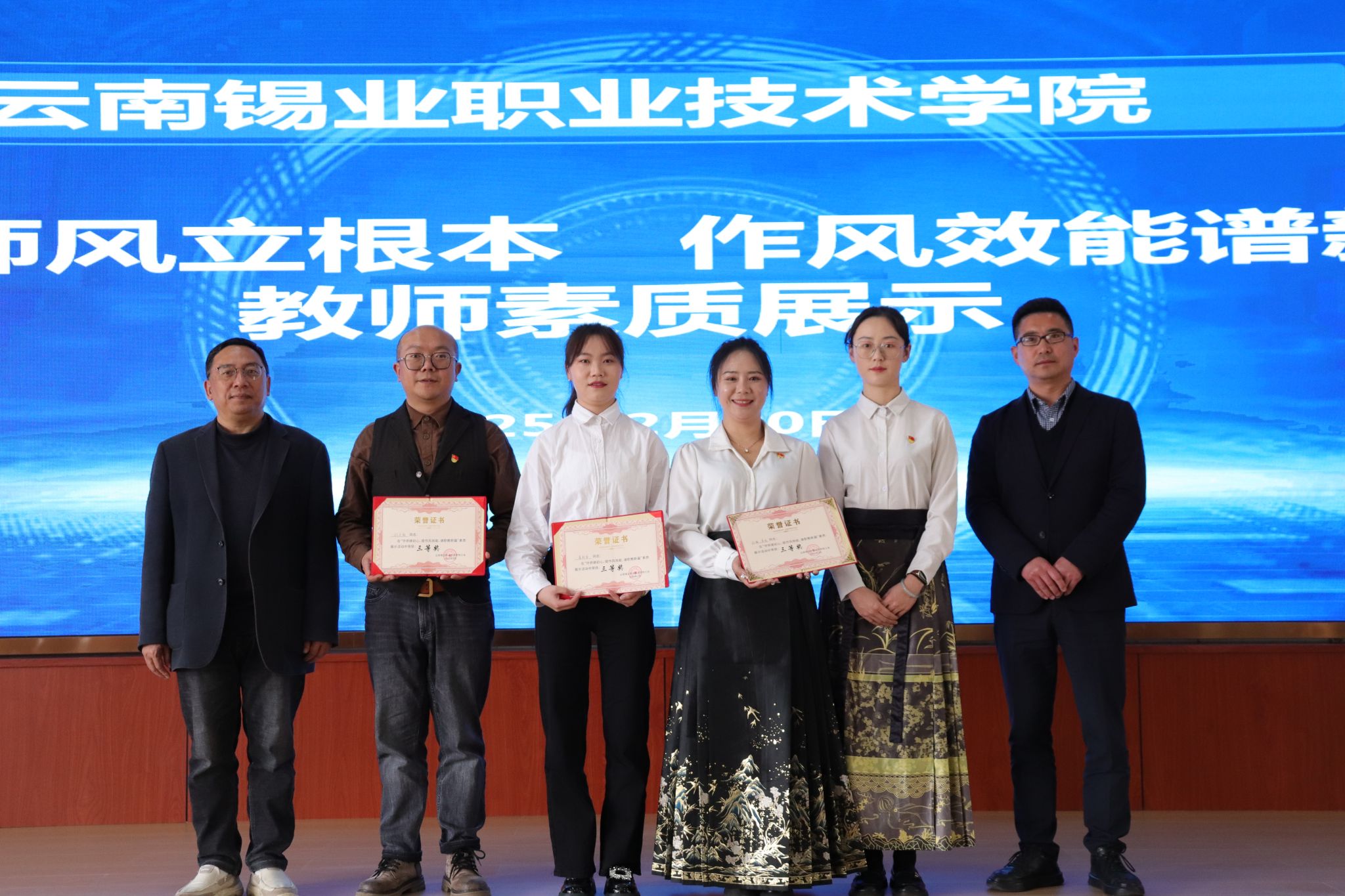 此次演讲比赛是学院大力加强师德师风建设、有力提升作风效能的生动实践,学院将以此为契机,持续深入在师德师风建设和作风效能提升上用力,切实为锡铟全产业链高素质技术技能人才培育平台建设打造一支师德高尚、业务精湛的教师队伍。