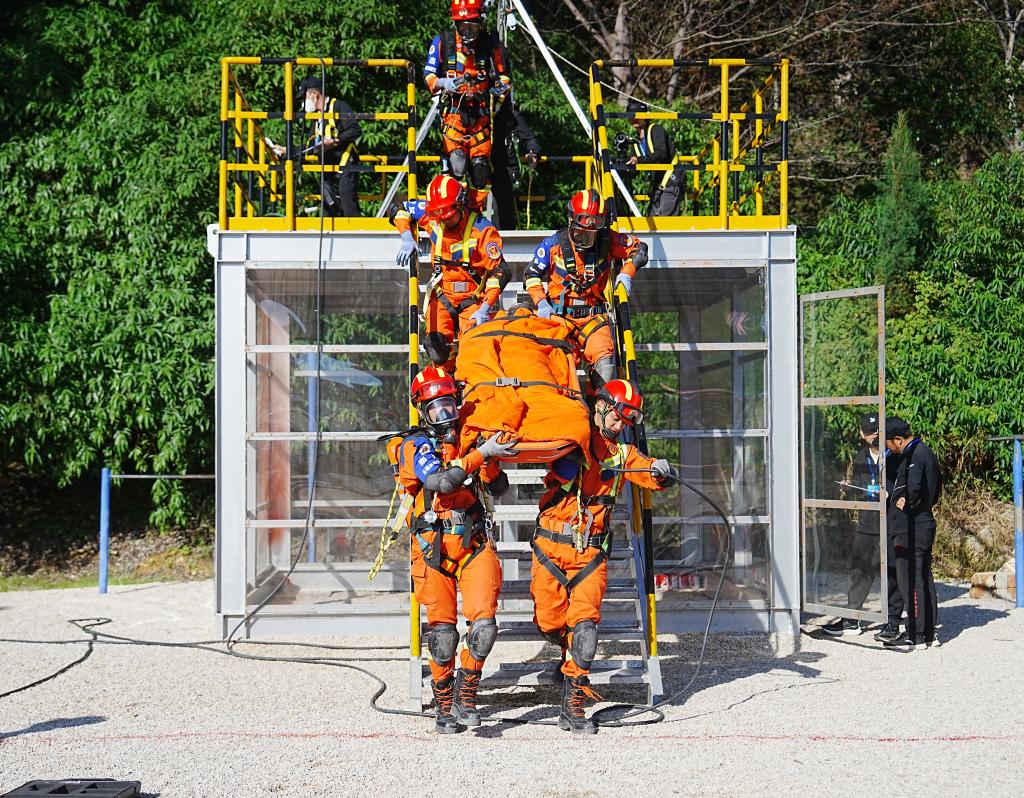 在地震灾害被困人员搜救处置项目中,选手仿佛置身于真实的地震现场,配合默契,搬运设备、设置支护、凿岩穿孔、全力搜救……每一个环节都紧张有序,团队协作和应急处置能力得到了充分体现,他们用实际行动诠释了什么是责任与担当。