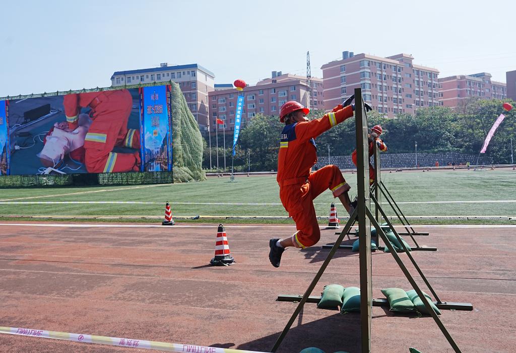 本次竞赛分为8个项目有序进行。赛场上,选手们全神贯注、沉着稳健、斗志昂扬,既拼体力、显身手,更比脑力、赛团队,忠实践行习近平总书记重要训词精神,切实增强人民群众安全感、幸福感。
