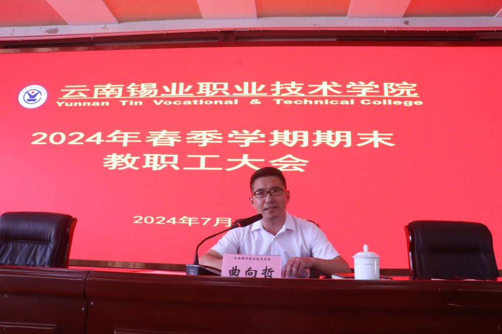7月8日下午,学院在508报告厅召开2024年春季学期期末教职工大会,总结回顾2024年上半年工作,安排部署2024年下半年工作。学院副院长曲向哲主持会议并讲话,学院全体教职工参加会议。