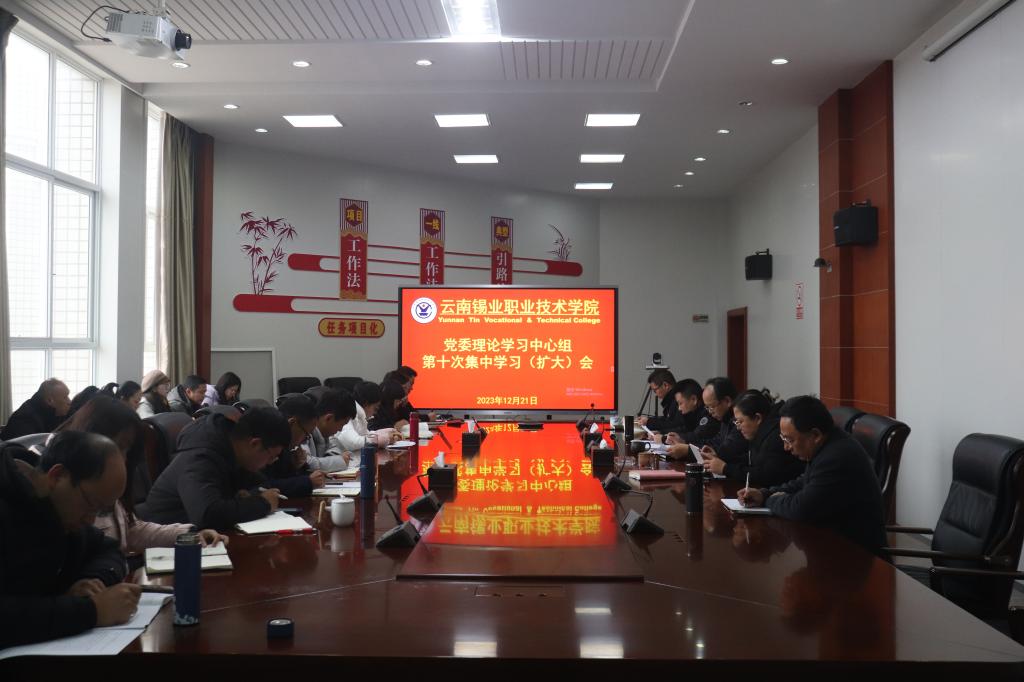 12月14日,学院党委理论学习中心组举行2023年第十次集中学习(扩大)会,深入学习贯彻习近平文化思想,围绕“在新的历史起点上继续推动文化繁荣、建设文化强国、建设中华民族现代文明”这一新的文化使命,坚定文化自信,秉持开放包容,坚持守正创新,不断巩固壮大奋进新时代的主流思想舆论,为学院打造高技能人才培养基地提供坚强思想保证、强大精神力量、有利文化条件。