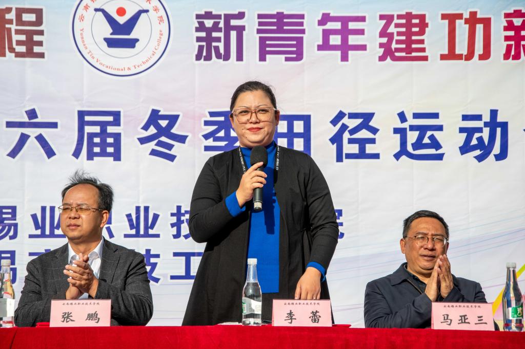 学院党委副书记、院长李蕾宣布新葡的京集团8814检测站第十六届冬季田径运动会开幕。