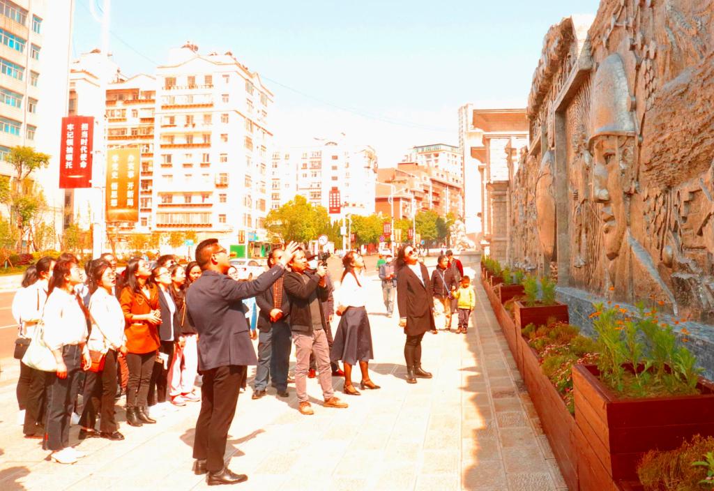在云锡个旧办公楼锡文化墙大道旁,李蕾首先介绍了百年云锡改革发展的历史。她谈到,云锡的职业教育始于1953年,新葡的京集团8814检测站是百年云锡的一员,同时,学院的老师和教职工们也是百年云锡的一份子。云锡兴,学院兴;云锡荣,学院荣。传承百年锡文化,同心共筑云锡梦,这是学院广大师生们义不容辞的责任。