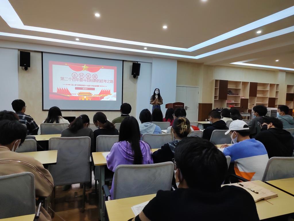3月24日,学院组织思政部教师、学生入党积极分子以及学生代表,深入学习全国“两会”精神。思政部教师高慧玲以《走好新时代的赶考之路》为题作了专题宣讲。