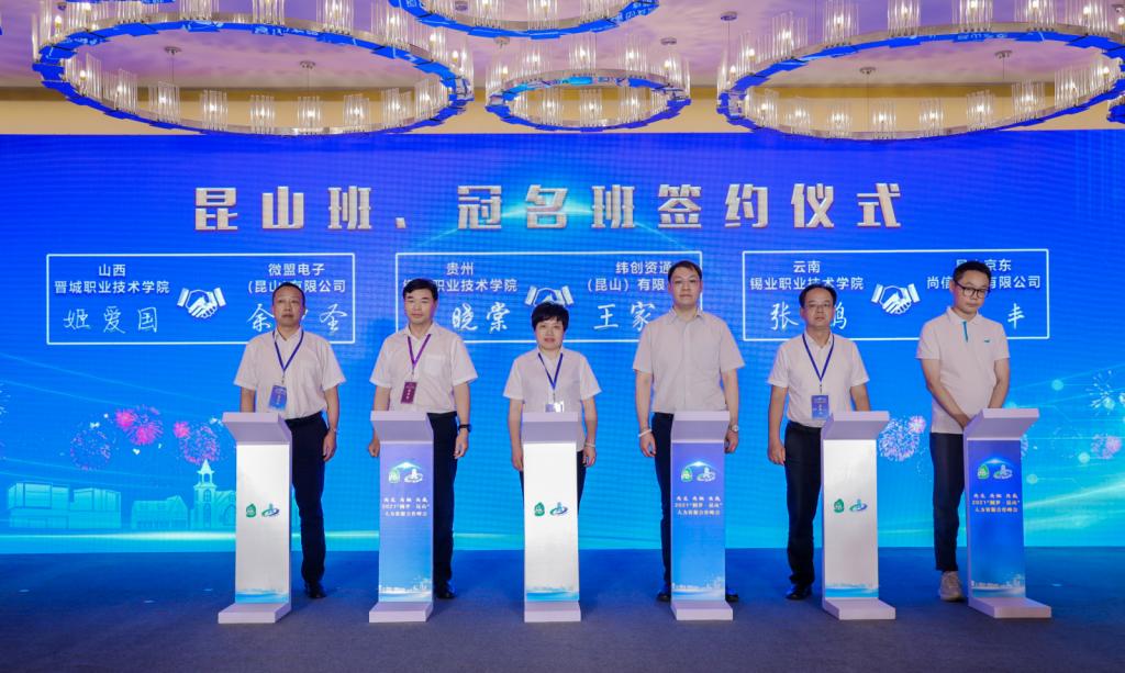 7月11日,张鹏参加以“共生 共融 共赢”为主题的2021“圆梦·昆山”人力资源峰会,代表学院与昆山人社局就昆山班、冠名班签约。同时学院被评为昆山人力资源合作院校“显著贡献奖”。