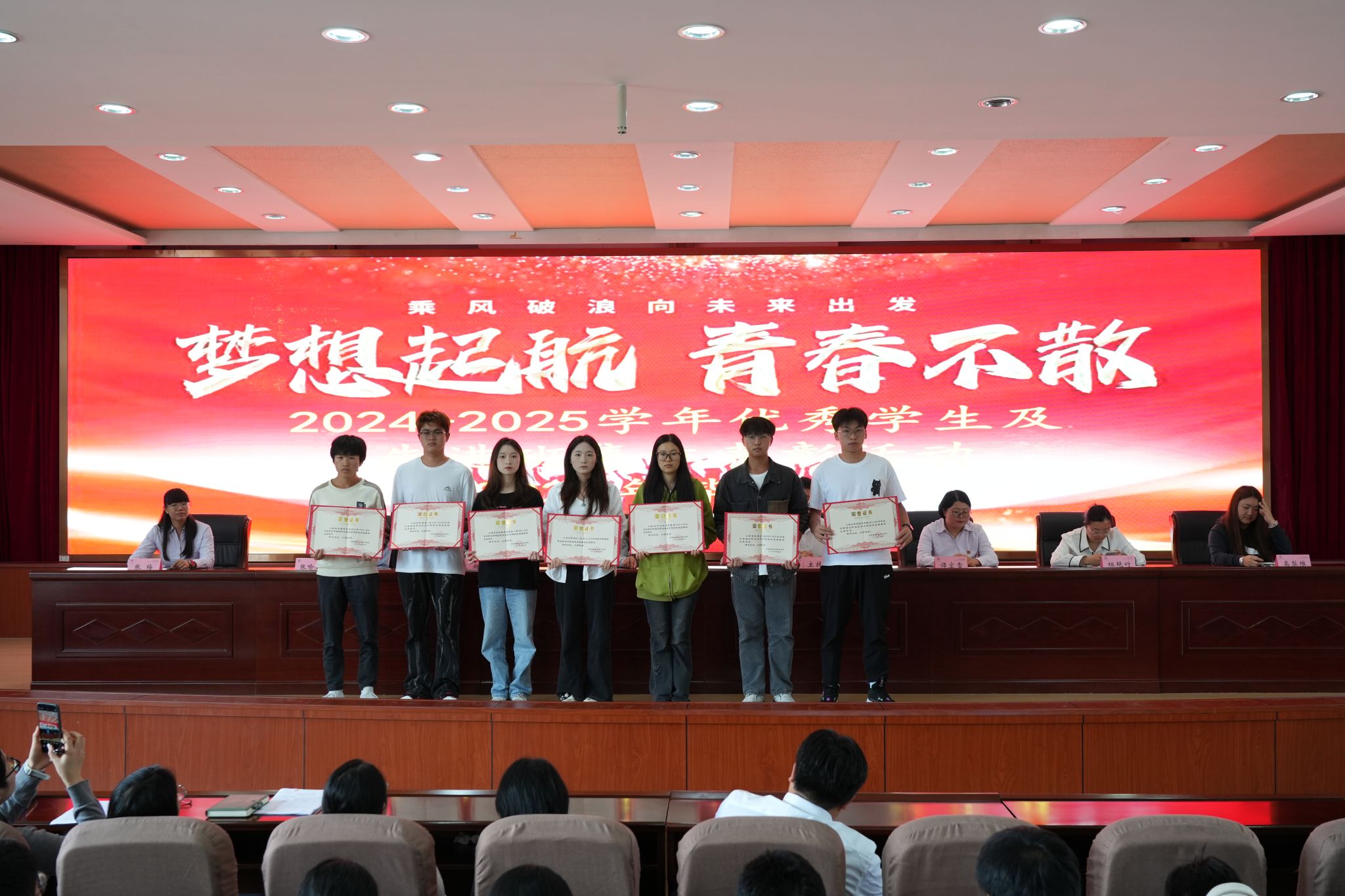典礼上,学生工作处处长钟忠宣读了2023-2024学年国家奖学金、省政府奖学金获奖名单。教务科研处副处长谭宏雪宣读了本学年省级“五好学生”、“优秀学生干部”、“先进班集体”及省级优秀毕业生名单。主席台领导分别为上述荣誉的获奖代表颁发了证书。