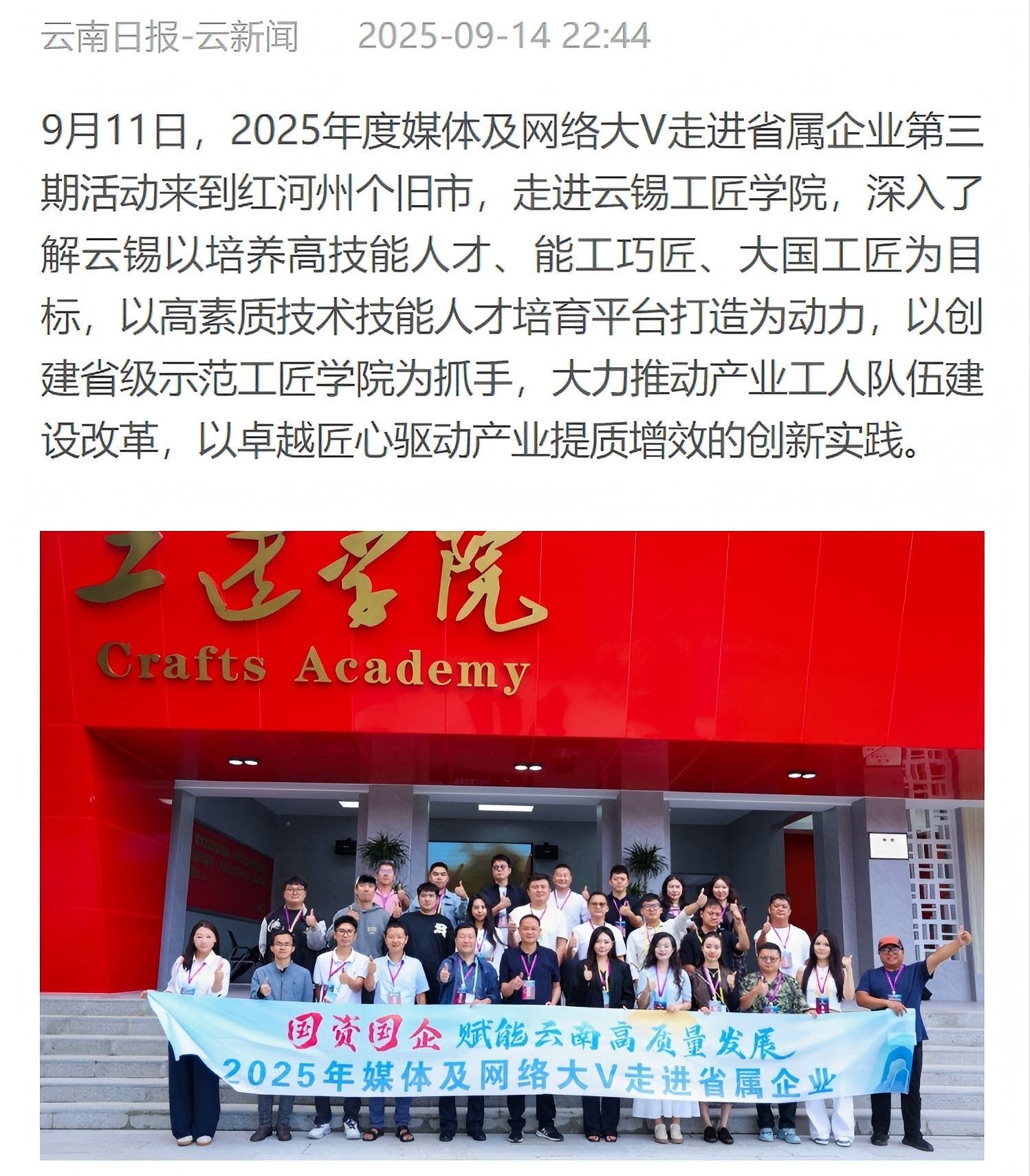(2025年度媒体及网络大V走进省属企业第三期活动圆满结束 来源:云南新闻联播)