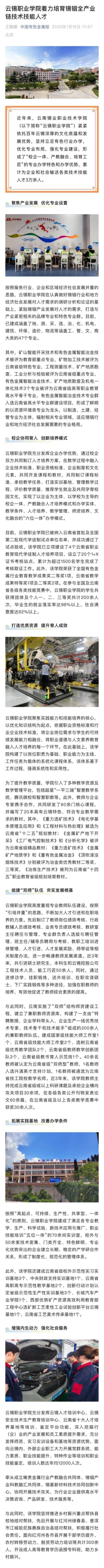 中国有色金属报:云锡职业学院着力培育锡铟全产业链技术技能人才