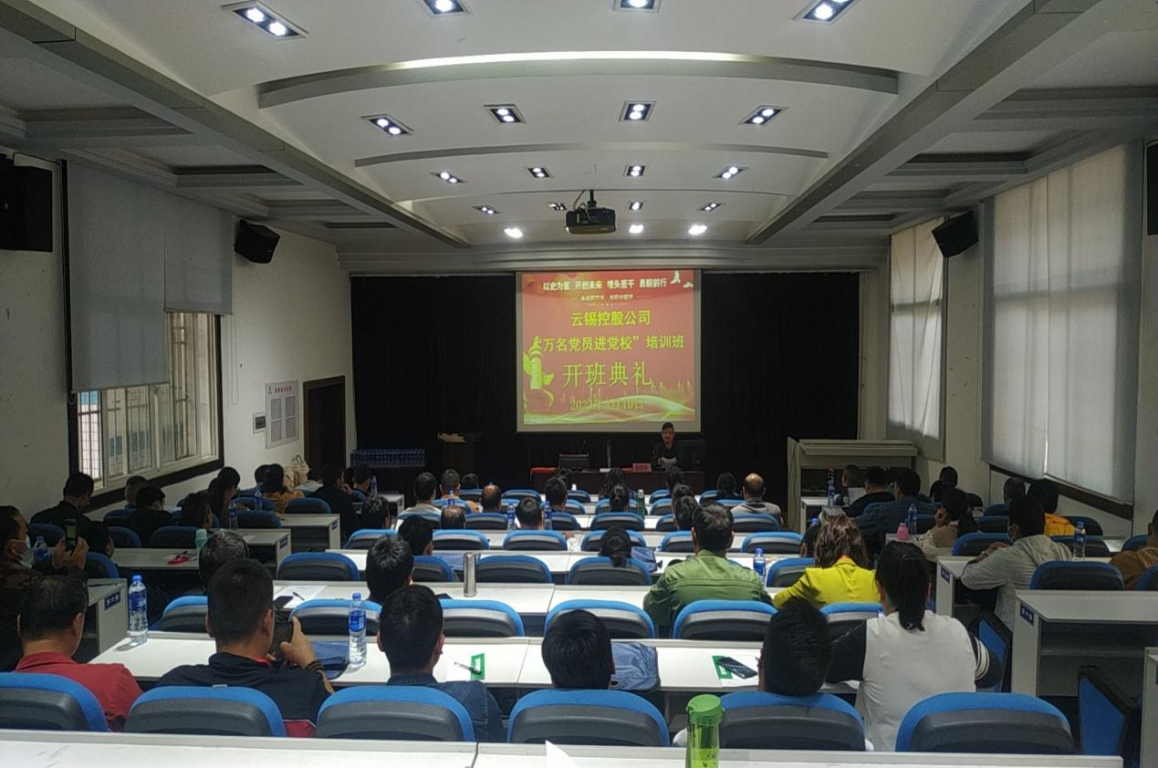 根据控股公司《关于开展深入学习宣传贯彻党的二十大精神“万名党员进党校”培训的通知》要求,云锡党群工作部,于2023年4月10日在云锡党校举办了“控股公司深入学习宣传贯彻党的二十大精神“万名党员进党校第5期培训班”开班典礼,云锡党校培训部主任蔡剑同志参加了“万名党员进党校培训班”开班典礼,并作动员讲话。