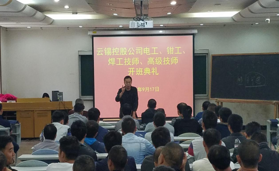 根据控股公司下达的《2018年度云锡集团(控股)公司员工培训计划》通知要求,学院职业技能培训鉴定处于2018年9月17日,在云锡人才培训中心举办了“电工、焊工、钳工技师(高级技师)职业技能培训班”开班典礼,职业技能培训鉴定处处长助理廖发武老师,班主任秦堃、张黎明、何素萍老师参加了开班典礼,并作动员讲话。