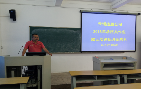 根据控股公司下达的《2018年度云锡集团(控股)公司员工培训计划》(云锡控股〖2018〗50号)通知要求,学院职业技能培训鉴定处于2018年5月28日,在云锡人才培训中心举办了“承压类作业取证培训班”开班典礼,职业技能培训鉴定处负责人张晖同志,参加了“承压类作业取证培训班”开班典礼并作动员讲话。