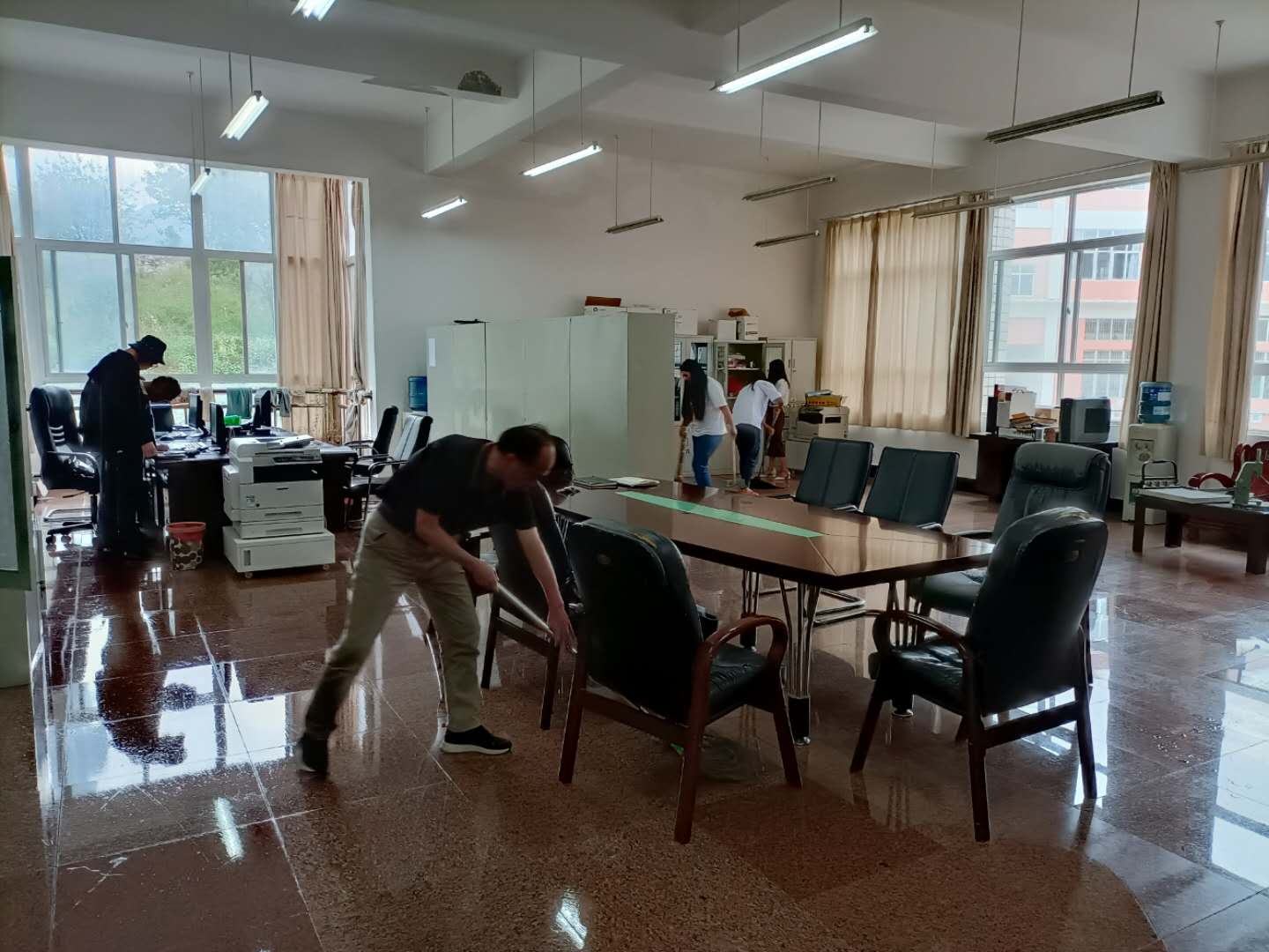 会后,教务科研处开展了爱国爱校卫生清扫活动,对教务科研处所属办公室进行了卫生清扫。
