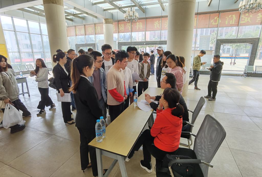 招聘会现场井然有序,气氛热烈非凡,各招聘摊位咨询者络绎不绝。同学们手持简历,前往心仪的单位积极与招聘人员交流,主动了解用人单位的工作岗位、工作环境和工作福利等情况,认真挑选自己心仪的岗位。各用人单位热情并耐心地回应前来咨询和面试的同学们,积极地为学生介绍单位概况,提出用人招聘需求并介绍公司的薪酬待遇、发展前景等,同时也认真了解他们的就业心态和就业意愿,遴选学生简历。
