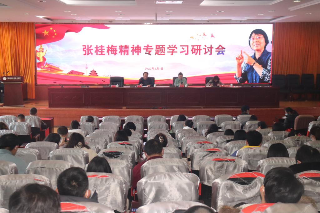 为进一步激励广大教师坚守教育报国初心,牢记立德树人使命。1月4日,学院在教学楼508报告厅举办张桂梅精神专题学习研讨会,深入学习张桂梅先进典型事迹。学院党委书记张鹏领学了张桂梅先进典型事迹,院长李蕾提出了希望和要求,副院长张惠芬主持研讨会。张鹏谈到,回望张桂梅的人生历程,她身上的闪光点很多,她爱国、爱校、爱孩子,坚定地继承和发扬了“燃灯精神、雷锋精神、青松精神、老黄牛精神”。李蕾强调,张桂梅是践行“不...