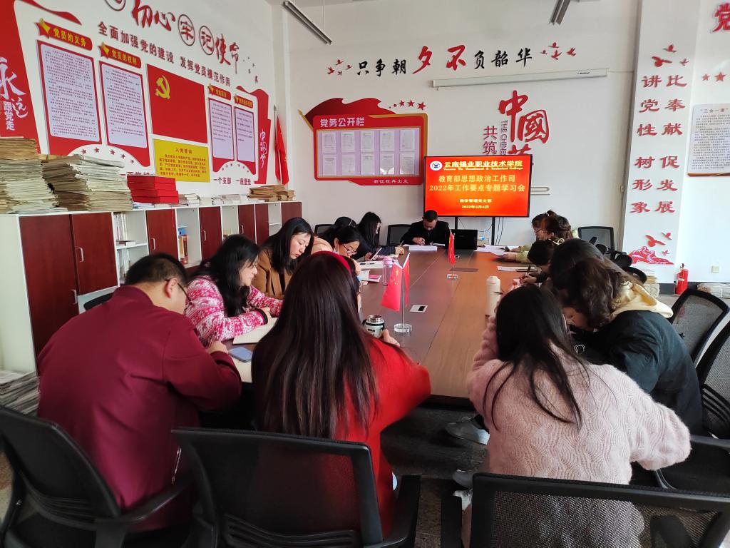 3月4日,学院召开专题学习会议,深入学习贯彻《教育部思想政治工作司2022年工作要点》。副院长张惠芬带领专兼职教师代表认真学习了《教育部思政工作司2022年工作要点》,从精心组织实施高校师生迎接学习宣传党的二十大专项行动、全面推进高校思想政治工作守正创新、系统强化高校党建和思想政治工作战略支撑等方面,结合工作实际,逐条深入解析。她指出,《要点》为我们开展思想政治工作“敲黑板、划重点”,指明了方向,大家要...