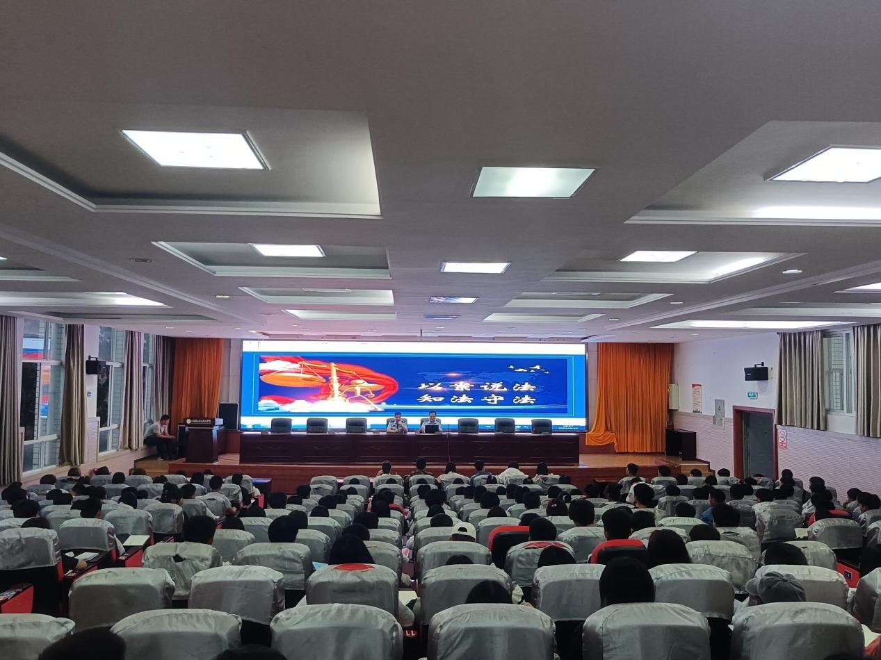 为了进一步增强师生的法制观念和法律意识,加强对学生的行为规范教育和管理,让每一位学生养成学法、懂法、依法办事的好习惯,有效地树立和维护良好的学风校风。4月22日下午,学院邀请了法制副校长邹劲荣警官,为在校学生进行了法制安全教育讲座。学院安全保卫处处长钟忠主持。邹警官根据当前的社会和校园周边安全稳定形势,从培养学生树立法制观念、防毒、防暴力、防盗、防传销等几个方面进行了详细的讲解,并通过以案说法,以...